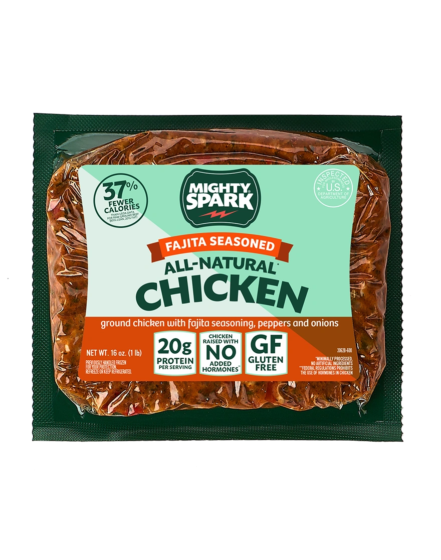 Looking for a healthy alternative to beef without sacrificing on flavor? Mighty Spark's ground chicken artfully blends all-natural cuts of chicken with whole-food inclusions. Make over your boring beef recipes using our crowd pleasing chicken and get ready to dish up seconds!